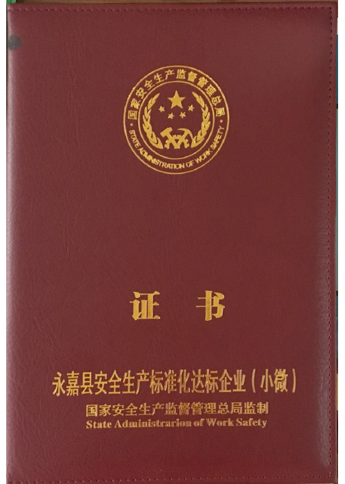 安全生產標準化達標企業證書